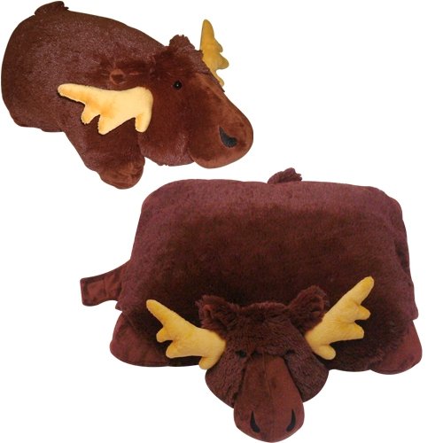 "SLEEPING FRIENDZ" BRAND MOOSE PILLOW PET, 18" LARGE. They are plush folding stuffed animal and pillow all in one. They are made of high quality, super soft chenille. Close the strap across their bellies and you have friendly comforting pets. Open then strap and the pet becomes a comfortable pillow. Even more, those plush folding stuffed animals are soft like a real fur coat. Read more...