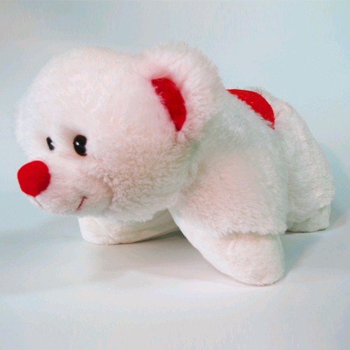 All-white coat with red nose and message heart on back. This precious Pillow Pet is the perfect way to say "I Love You" - and he will love you too!Starts out as your favorite pal, but release the velcro tab on its tummy and before you can say "snuggle", it transforms into the coziest pillow in your house. These multi-functional stuffed animals are a favorite for all ages, from toddlers to teens. Pillow Pets are super-soft chenille plush animals so adorably lovable and squeezably huggable you'll never want to put them down! Read more...